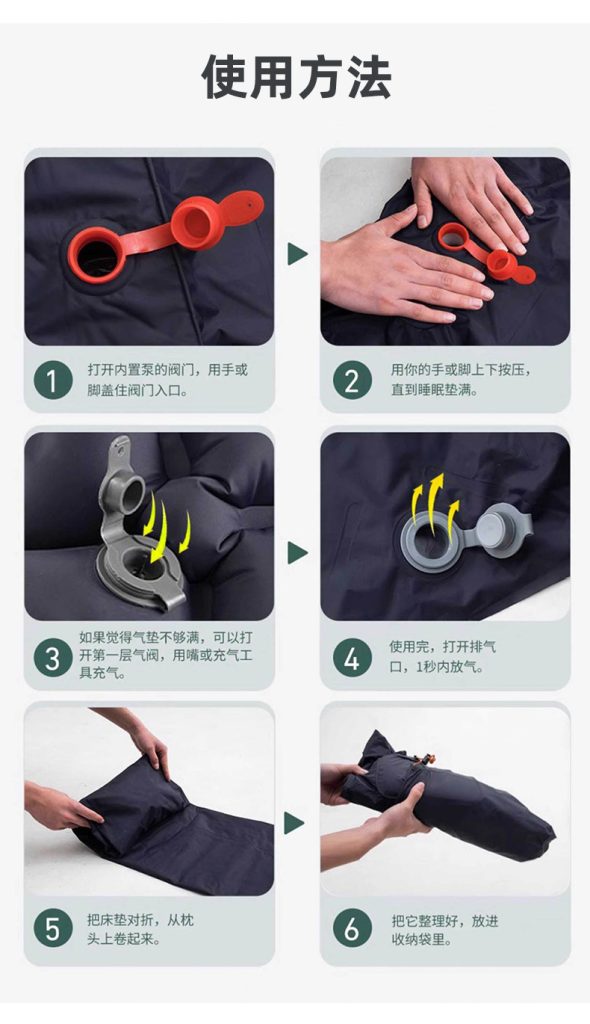 – 脚踩自动充气,轻松省力:无需额外打气工具,打开阀门后用手或脚轻踩即可快速充气,女生也能轻松操作。泄气时,1秒速放,收纳不费力。